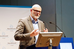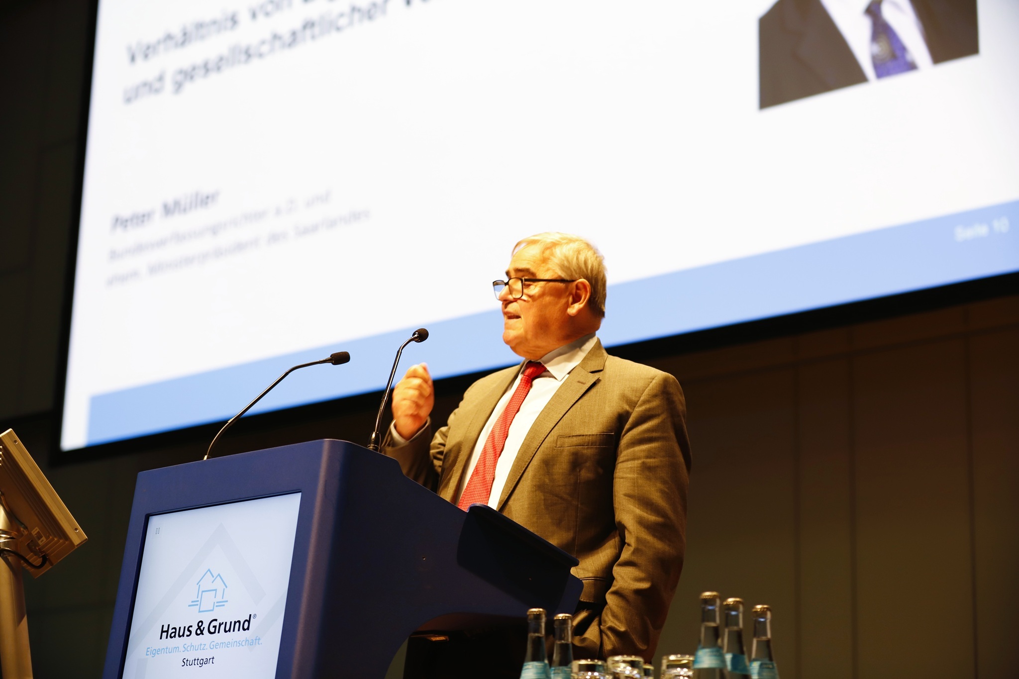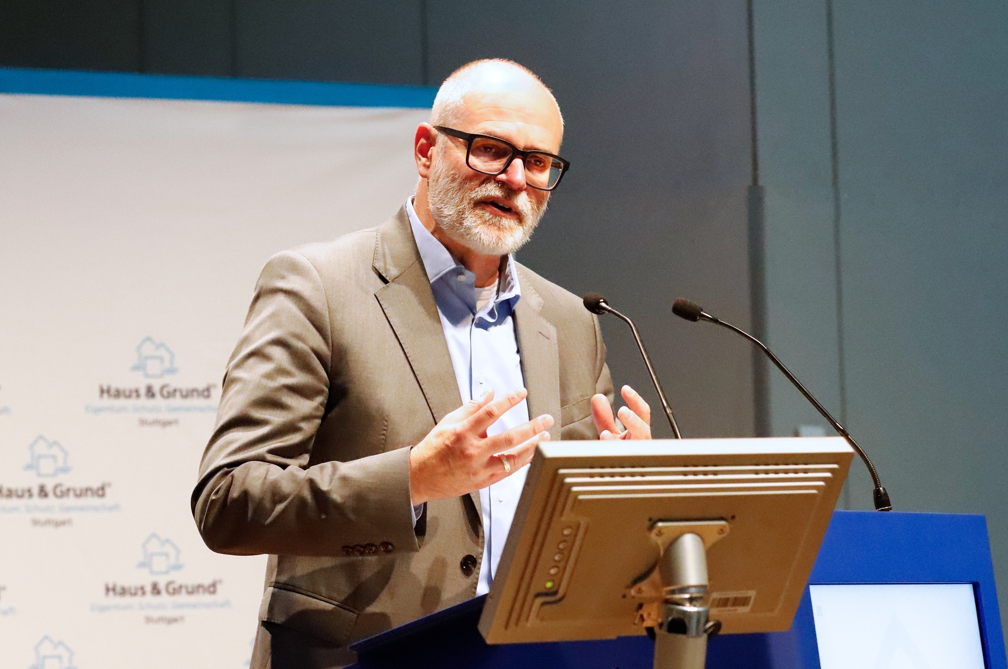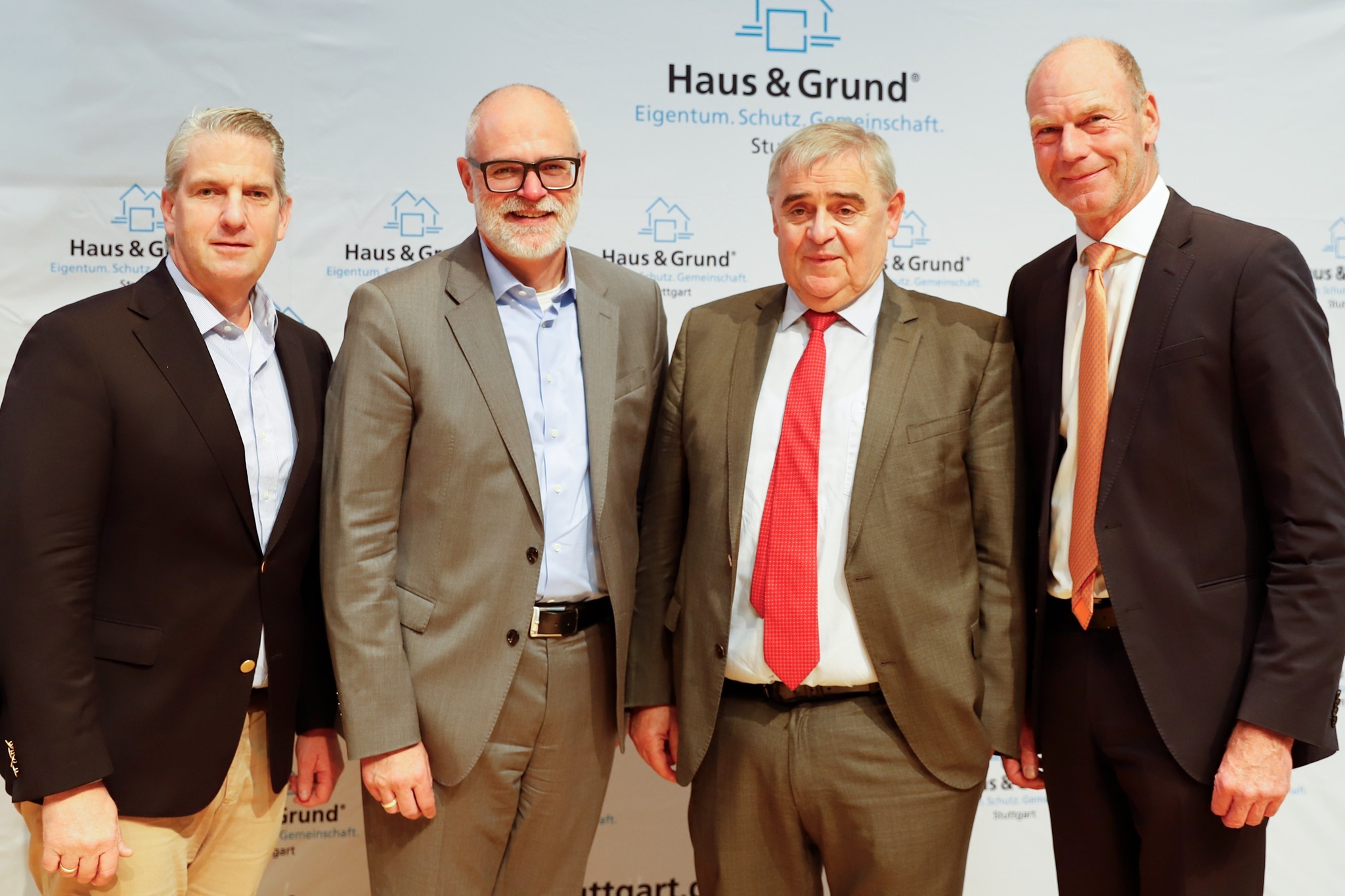 Gruppenfoto vlnr.: Ulrich Wecker (Geschäftsführer Haus & Grund Stuttgart), Dirk Güsewell (Vorstand EnBW), Peter Müller (Ministerpräsident a.D., ehem. Bundesverfassungsrichter), Joachim Rudolf (Vorsitzender Haus & Grund Stuttgart)